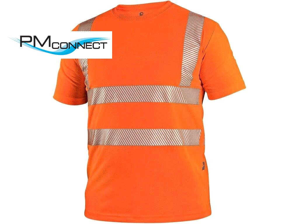 Pánské výstražné tričko s krátkým rukávem, kulatý průkrčník, zpevňující krční páska, boční švy, síťovina v podpaží, segmentované reflexní pruhy: 2 horizontální, 2 vertikální (šíře 5 cm). Doporučené použití: stavebnictví, silničáři, řidiči, logistika, údržba, kolo, motorky, skladování.Doplňkové parametry