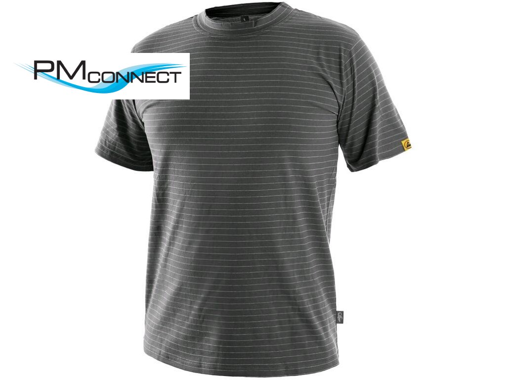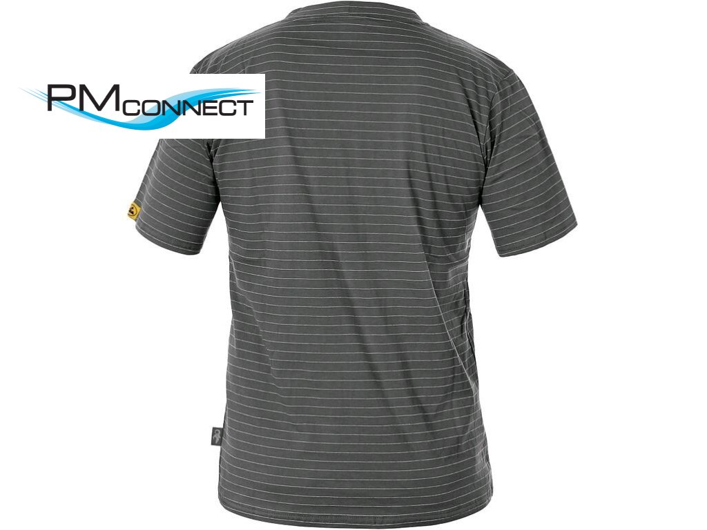Antistatické tričko s krátkým rukávem, kulatý průkrčník, zdvojené švy, postranní švy. Doporučené použití: ESD prostředí, obsluha CNC strojů a robotů.