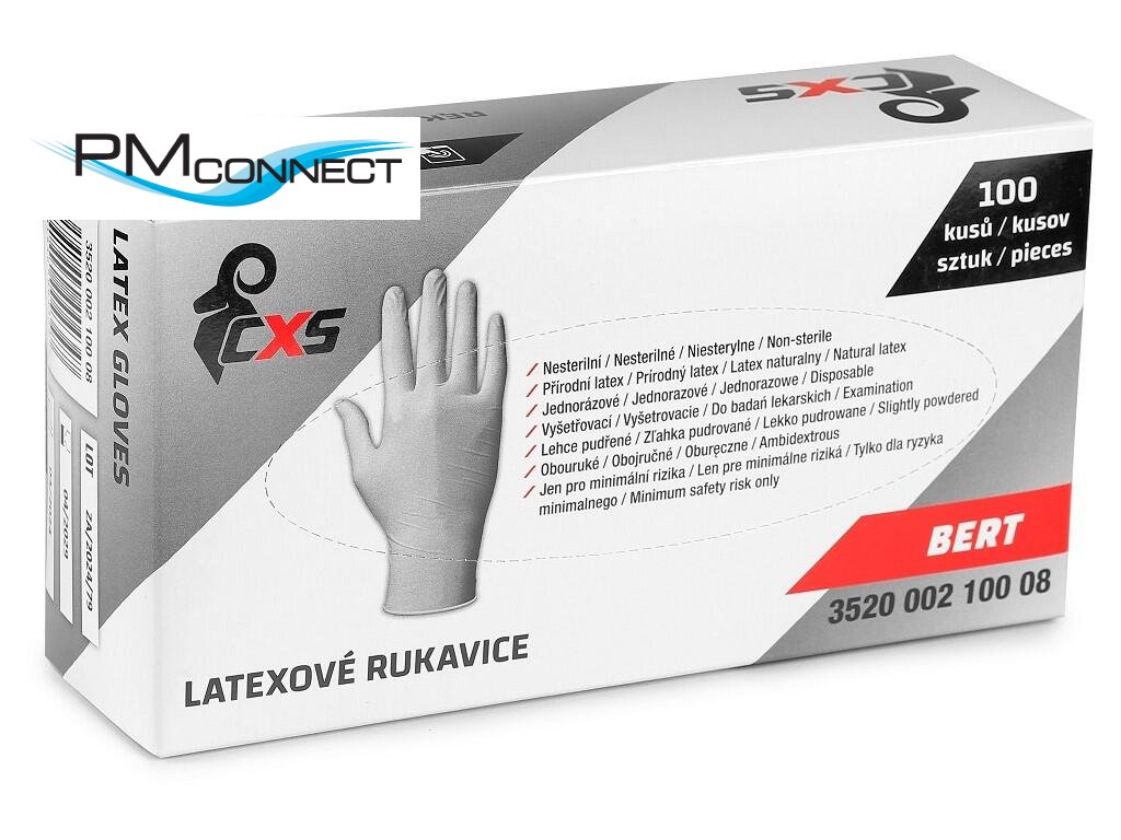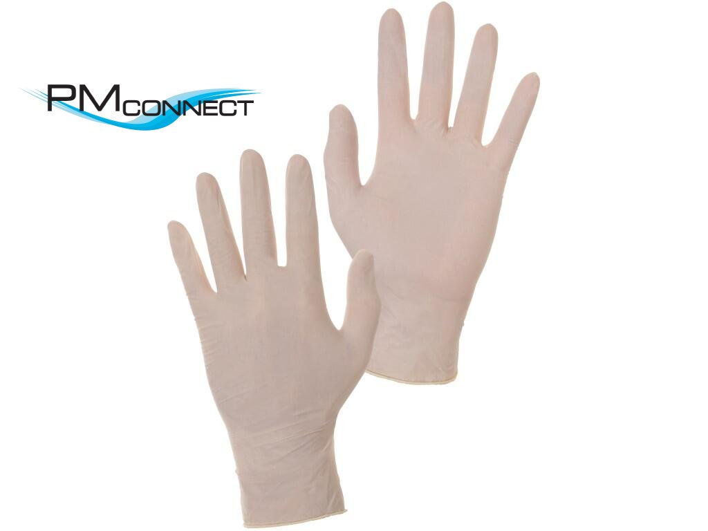 Jednorázové latexové rukavice, hmotnost 5.0 g, lehce pudřené, 100 ks v balení. Zdravotnický prostředek třídy I. Umožňují práci s dotykovými displeji. Doporučené aplikace: úklidové práce, lakovny, laboratoře, zdravotnictví, kosmetický průmysl.Doplňkové parametry