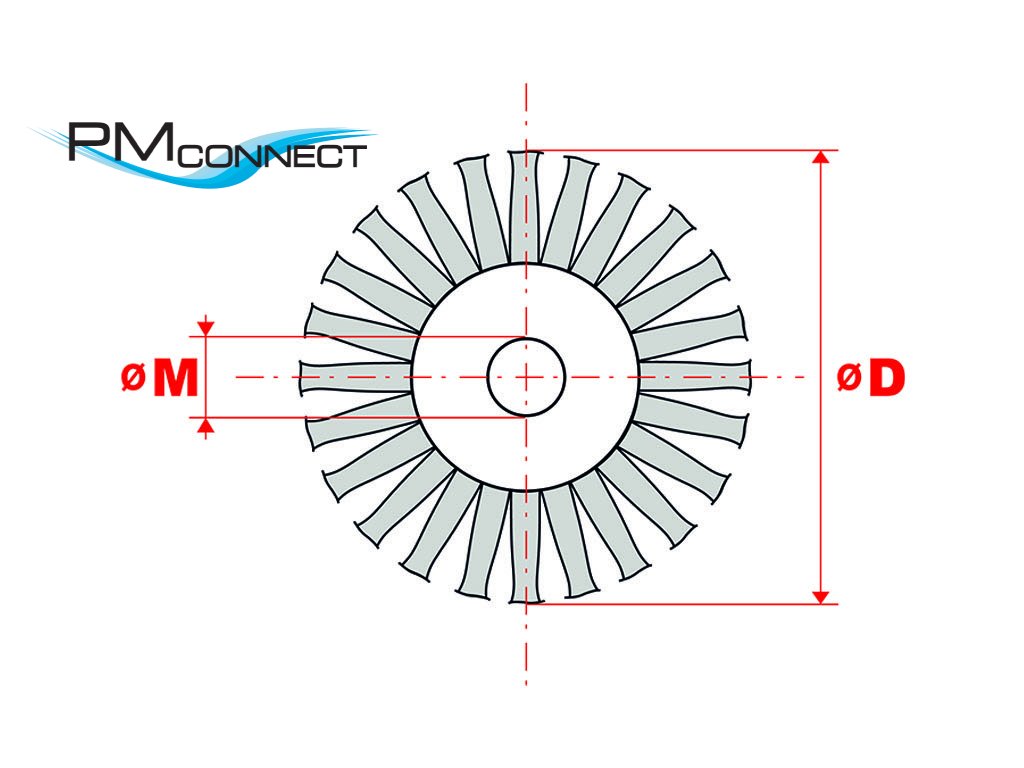 Velký copánový kartáč ø 200 mm, osazený hladkým ocelovým drátem o průměru 0,80 mm.