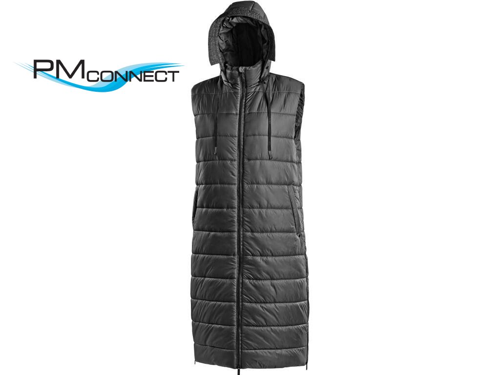 Dámská dlouhá zateplená vesta s odepínací kapucí. Vesta je vybavena oboustranným zipem, bočními rozparky na zip, boční kapsami na zip a vnitřní kapsou na zip. Na kapuci, podél hlavního zipu a rozparku se nachází decentní černé reflexní doplňky pro zvýšení viditelnosti.Doplňkové parametry