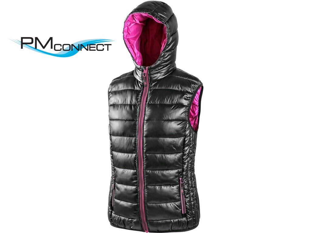Dámská zateplená vesta s reflexními doplňky, kapuce napevno, 2 boční kapsy na zip, spodní lem do gumičky.Doplňkové parametry