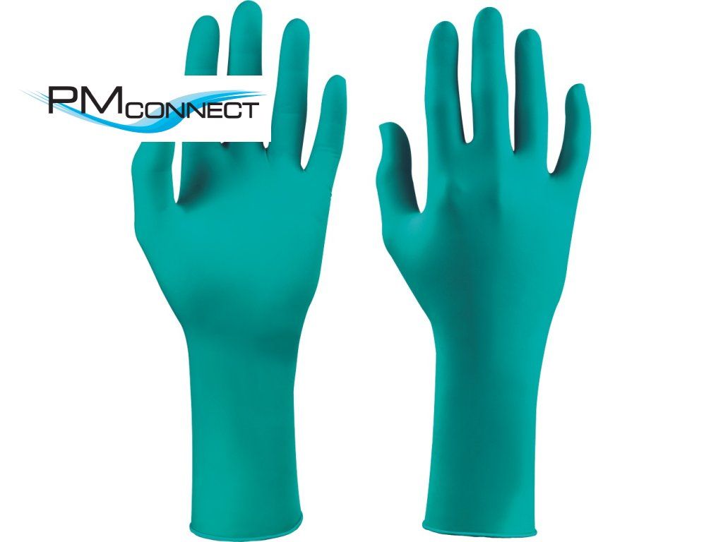 • zelené antistatické jednorázové rukavice ze 100% 0,12 mm silného nitrilu bez příměsí • s rolovaným okrajem • nepudrované (A92-600 a A92-605) • v délce 30 cm • 100 kusů v boxu