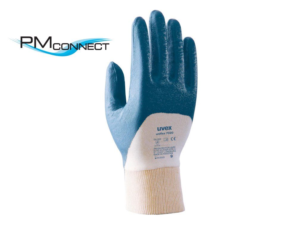 Solidní ochranné rukavice na všeobecné práce. Dobré zpracování, vysoký oděr a příjemně padnoucí tvar – tak lze charakterizovat tyto ochranné rukavice. Vlastnosti: dobrá odolnost proti otěru, kvalitní bavlněný materiál, vysoká flexibilita, velmi dobře sedí Název výrobku: uniflex 7020 Velikosti: 7, 8, 9, 10 EN: 388 (4 1 1 1) Provedení: hřbet ruky částečně povrstven, náplet na zápěstí Podšívka: bavlněný interlok Povrstvení: NBR (nitril kaučuk) Barva: modrá Odolnost: Dobrá odolnost proti olejům, tukům Nejmenší jednotka balení: 100 párů v kartonu, 10 párů ve svazku