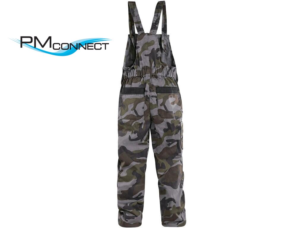 Dětské maskáčové kalhoty s náprsenkou, vybaveny zesílenými koleny a sedem pro delší životnost. Pas na knoflíky, vzadu do gumy, šle s gumou vzadu, náprsní kapsa na zip s menší kapsou, přední i zadní kapsy, boční kapsa, reflexní doplňky.Doplňkové parametry