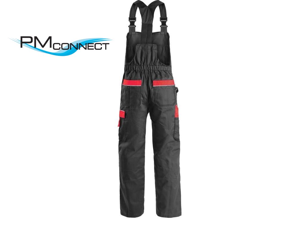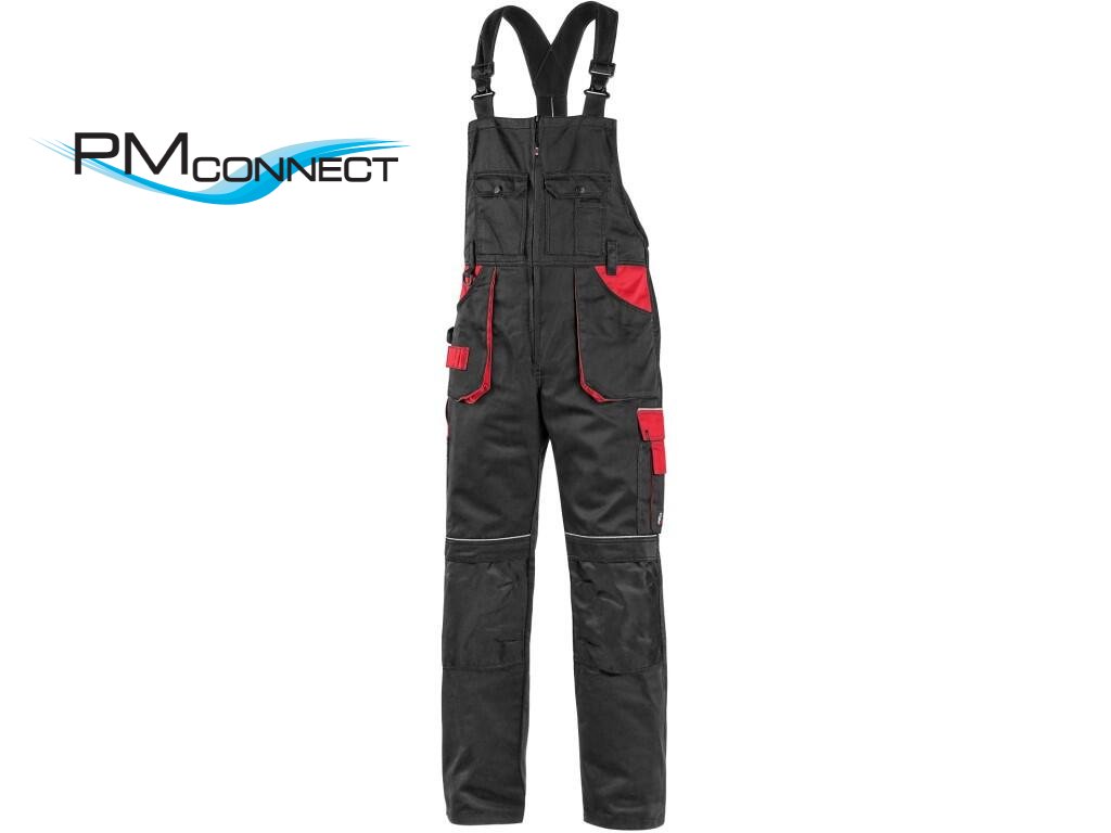 Pánské montérkové kalhoty s náprsenkou, náprsní kapsy s klopami, pas s poutky na opasek, vzadu do gumy, přední kapsy s poutky na nářadí, multifunkční kapsy na obou stranách, kolena zesílena 600D polyesterem s možností vložení kolenních výztuh, dvě zadní kapsy, jedna na suchý zip, šle s gumou vzadu, reflexní doplňky. Doporučené použití: stavebnictví, strojírenství, lehký průmysl, automobilový průmysl, logistika, skladová manipulace, spedice, autoservisy, údržba, montáže, zemědělství, zahrada, hobby.Doplňkové parametry
