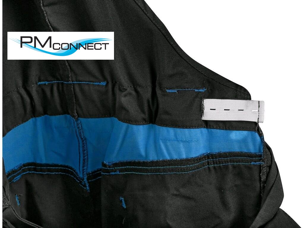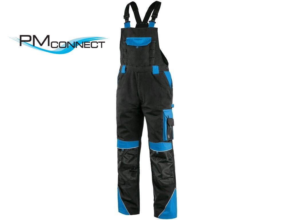 Pánské montérkové kalhoty s náprsenkou, náprsní kapsa s klopou, pas s poutky na opasek, v zadní části guma s knoflíkem pro přizpůsobení velikosti, přední klínové kapsy, multifunkční kapsy na obou stranách, kolena zesílena materiálem 600D polyesterem s možností vložení kolenních výztuh, dvě zadní kapsy s klopami, šle s gumou vzadu, reflexní doplňky.Doporučené použití: stavebnictví, strojírenství, lehký průmysl, práce na silnici, odtahové služby, automobilový průmysl, logistika, skladová manipulace, spedice, autoservisy, údržba, montáže, zemědělství, zahrada, hobby.Doplňkové parametry