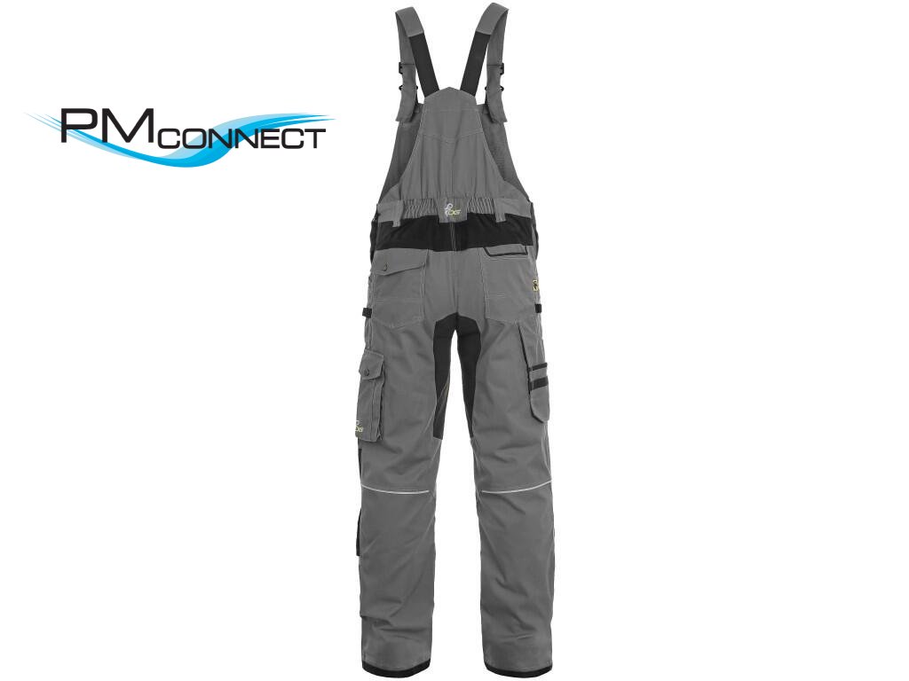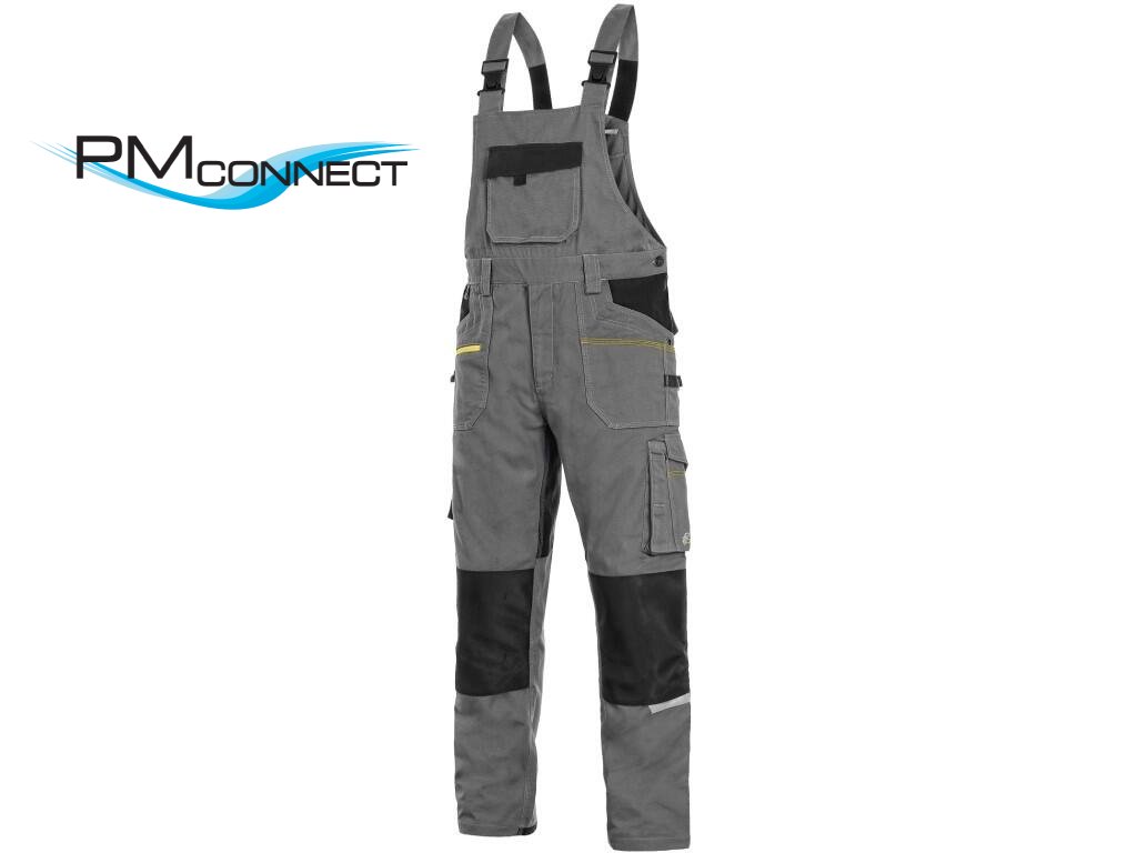 Pánské pracovní kalhoty s náprsenkou zateplené flanelem, strečová tkanina umožňující volný pohyb, náprsní kapsa s klopou, pas s poutky na opasek, přední kapsy s kapsou na zip, multifunkční kapsy na obou stranách, kolena zesílena 600D polyesterem s možností vložení kolenních výztuh, dvě zadní kapsy - jedna s klopou, zadní spodní lem nohavice vyztužen 600D polyesterem, šle s gumou vzadu, reflexní doplňky. Kalhoty jsou vybaveny EASY-PROLONG systémem, který umožňuje snadné prodloužení střihu na vyšší postavu uvolněním kontrastního švu na nohavicích. Doporučené použití: strojírenství, stavebnictví, lehký průmysl, automobilový průmysl, logistika, skladová manipulace, spedice, autoservisy, údržba, montáže, zemědělství, zahrada, hobby.