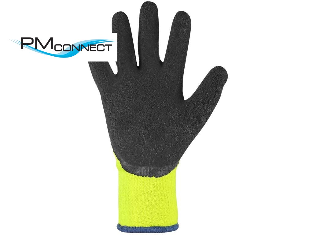 Zimní bezešvé pletené rukavice, akrylový úplet česaný z rubové strany, dlaň a prsty povrstveny latexovou pěnou, zdrsněný protiskluzový povrch, ochrana proti kontaktnímu teplu do 250 °C. Doporučené aplikace: stavebnictví, hobby, práce ve vlhkém a chladném prostředí, práce s horkými předměty do 250 °C, logistika, mrazírny, strojírenství, montážní práce, zemědělství, automobilový průmysl, chladírenský průmysl, údržbářský průmysl, komunální služby.Doplňkové parametry