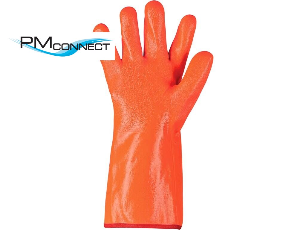 Zimní rukavice šité z bavlněného úpletu, celomáčené v PVC s polyuretanovou vložkou a teplou flanelovou podšívkou. Dlaňová a hřbetní část s prsty zdrsněny pro lepší úchop. Doporučené aplikace: práce ve vlhkém a chladném prostředí, mrazírny, chladírenský průmysl, rybářství.Doplňkové parametry